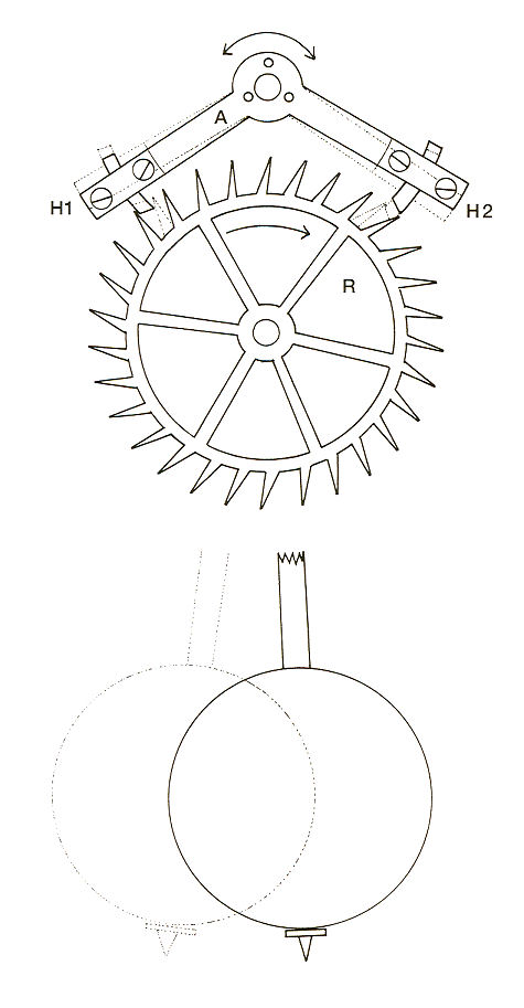 Siehe auch: [Anker] [Ankerrad] [Bodenstanduhr] [Ergänzungsbogen] [Graham, George] [Graham-Anker] [Grahamhemmung] [Großuhr] [Hebung] [Hemmung, ruhende] [Palette] [Pendel] [Wanduhr]
